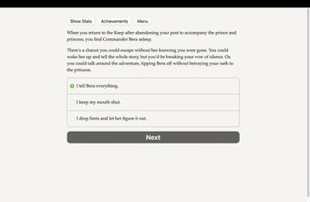 Their Majesties Pleasure adalah permainan RPG berbasis teks yang membawa pemain ke dalam dunia kerajaan yang penuh intrik dan romansa. Dalam permainan ini, pemain berperan sebagai anggota pengawal kerajaan yang bertugas melindungi pewaris takhta. Namun, petualangan dimulai ketika para pewaris yang nakal mengajak pemain menjelajahi rahasia kota, termasuk jaringan pembunuh bayaran dan pejabat kota yang korup. Pemain akan menemukan cabaret yang dipenuhi lagu, minuman, dan romansa, menciptakan pengalaman yang mendebarkan.